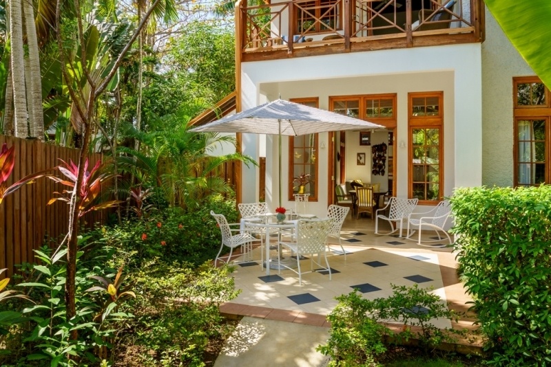 A walled garden provides privacy for guests at Mango Villa ... and just steps away is the shared pool for guests to enjoy!