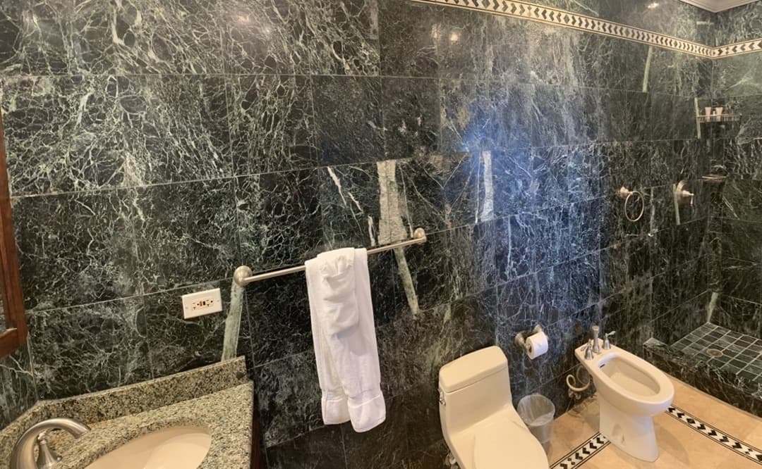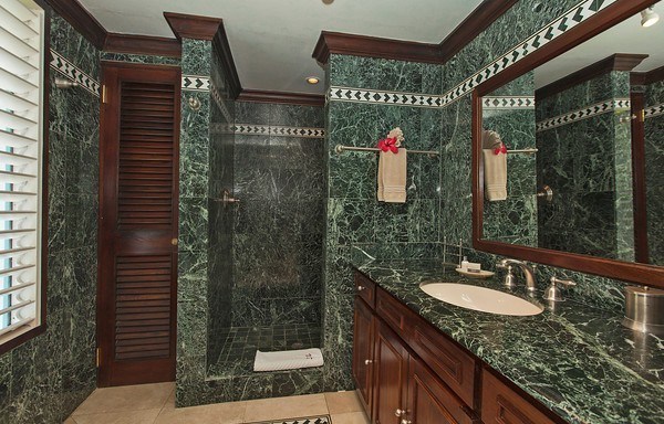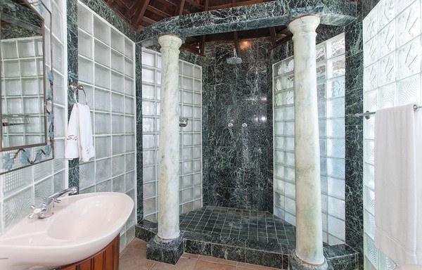 The master bedroom is extremely spacious and features a queen-sized bed. Four other bedrooms have twin beds each which may be converted to king size, if required. An additional room can be used as a lounging area or as a bedroom featuring a trundle sofa bed. All bedrooms have air-conditioning, cable television, DVDs and en-suite marble bathrooms equipped with waterfall showers.